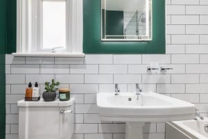 Being beautifully appointed in period style with Victorian style part tiled walls and three piece white suite comprising low level WC, pedestal wash hand basin, panelled bath with dual head shower unit over and glazed shower screen, obscure double glazed window, illuminated wall mirror, chrome towel warmer/radiator and inset downlighters.