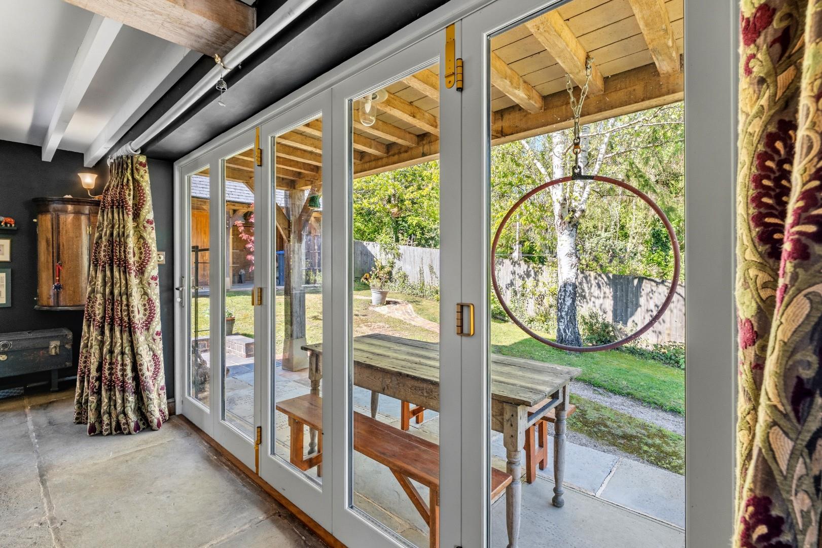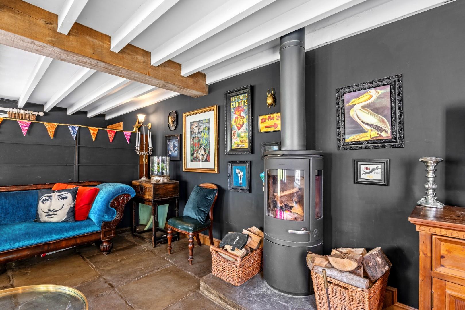 Having Yorkshire stone flagged flooring throughout, bespoke bi-fold doors opening onto the side terrace, handmade windows to front and rear elevations, stylish Morso wood burner standing on a stone plinth, cast iron Victorian style radiators to either end of the room, together with period style wall lights and light switches.
