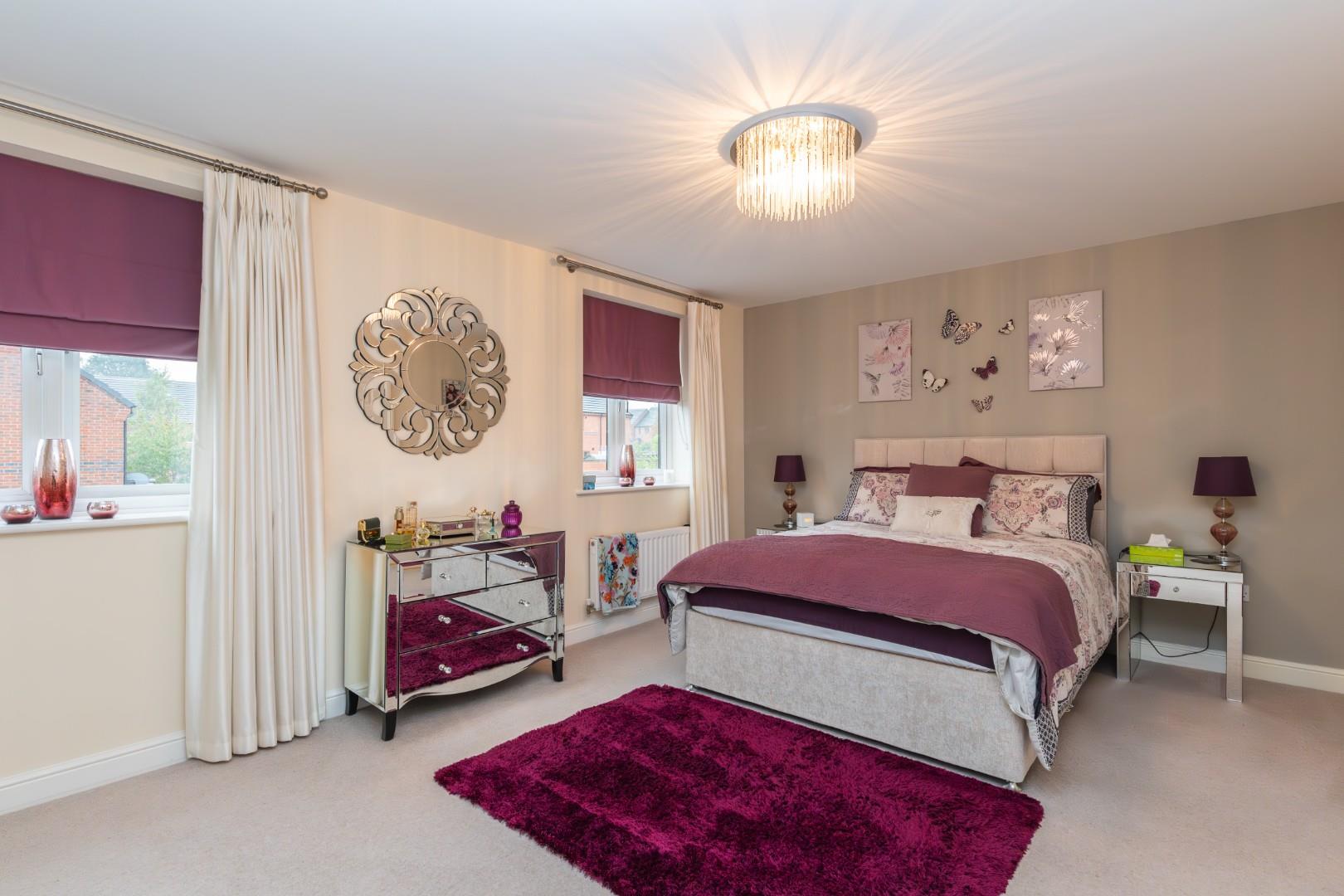 This beautifully presented and generous master bedroom benefits from a range of three double fronted built in storage wardrobes providing a mixture of hanging and shelving storage space. In addition there are two large double glazed windows to the rear elevation giving fantastic elevated views over the stunning rear garden with a paneled door leading into :-