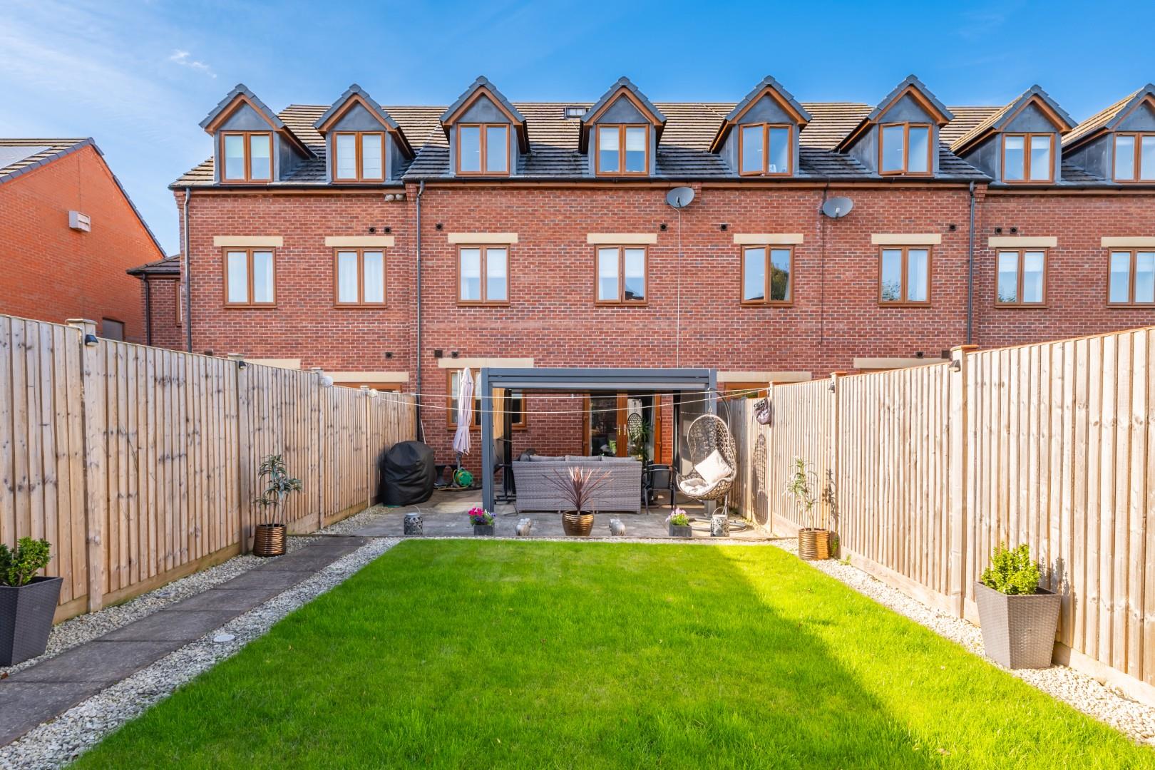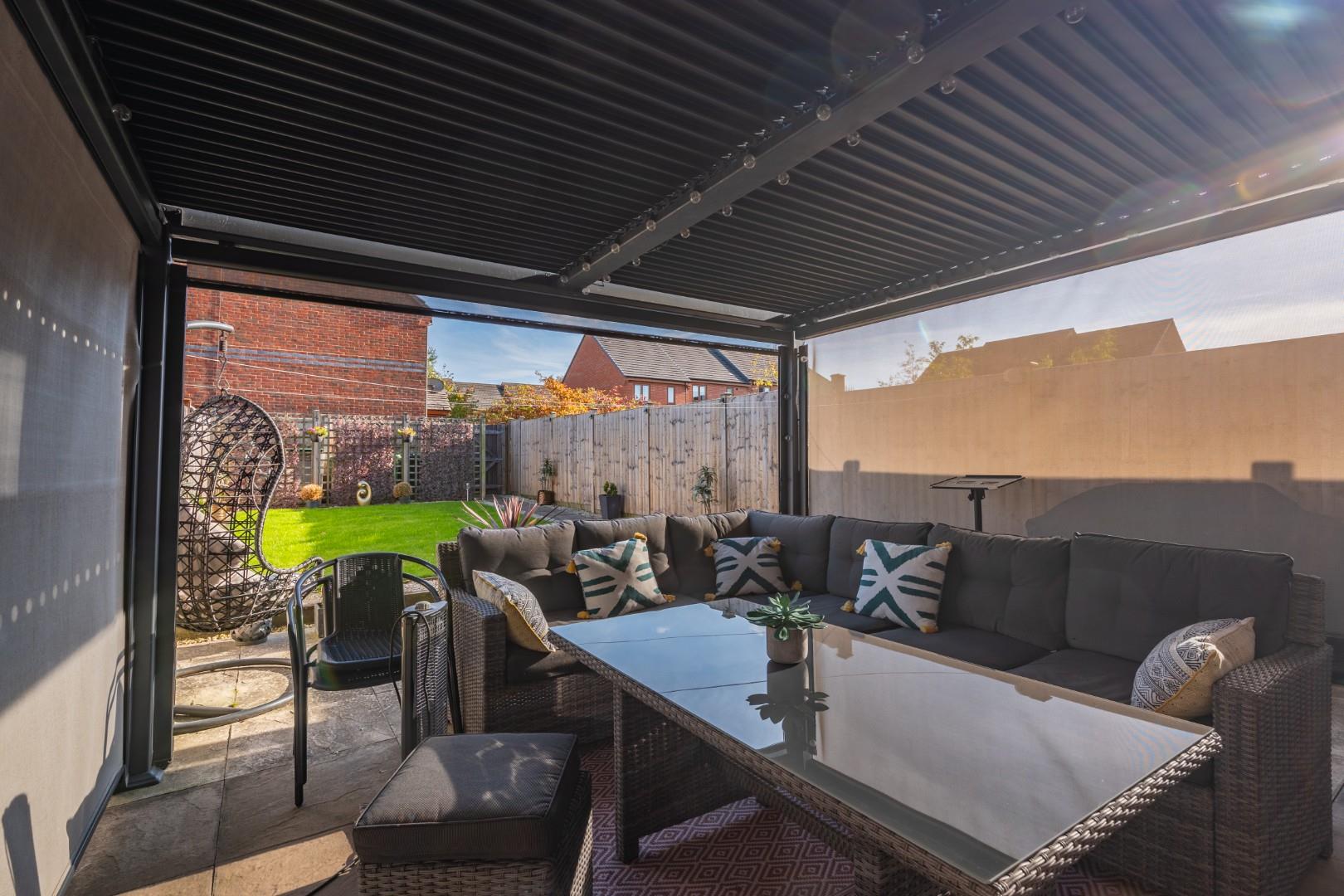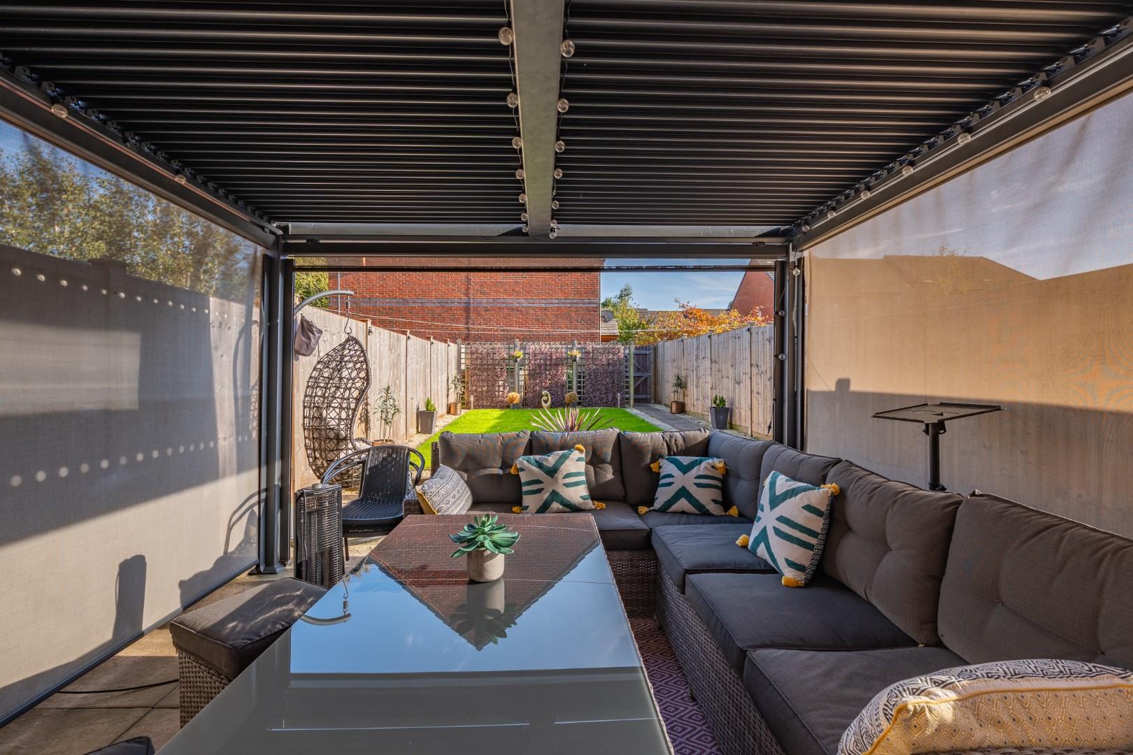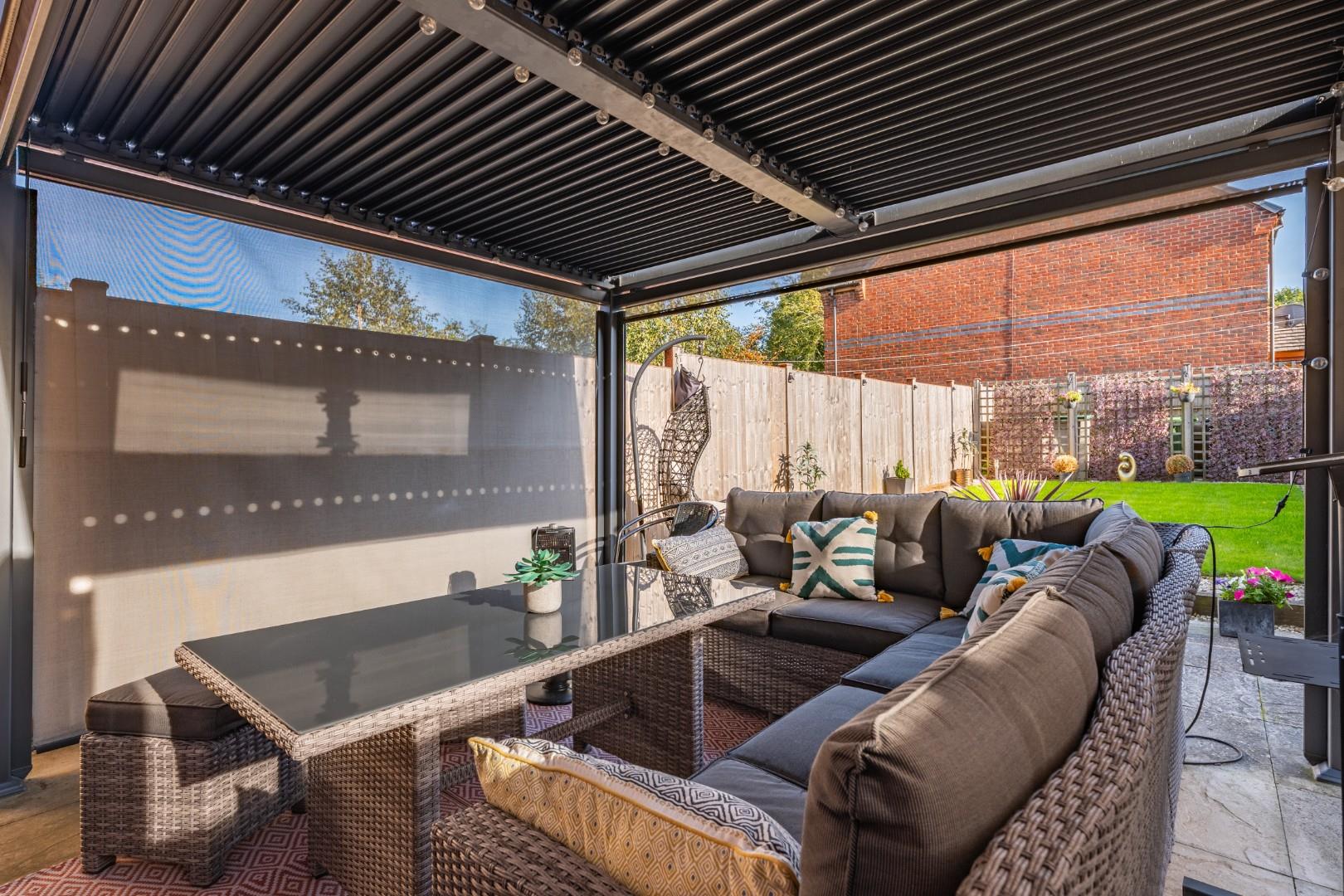 There rear garden has been landscaped and now offers a large paved patio which now has a covered gazebo for outdoor dining and also a section of lawns with pathway leading to the timber shed and rear access.