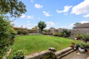 A delightful mature garden with fabulous views beyond over fields and countryside. The garden itself is principally lawned with paved patio area, attractively stocked borders and a further paved patio to the far corner. The garden can also be entered over a gated side foot access.