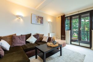 This spacious and well proportioned L-shaped living room, decorated in neutral tones offers access via a set of double doors out on to a balcony area to the front of the property.