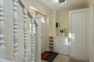 The entrance hallway is accessed to the side of the property and offers storage cupboards, stairs rising to the upper levels and doors to all rooms on this ground floor level.